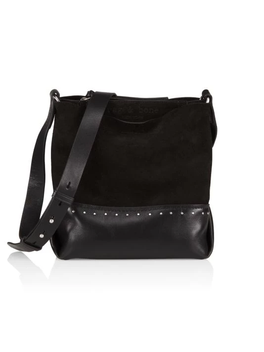 A mixture of supple suede and smooth leather comes together to construct this relaxed tote, highlighted with a studded trim.