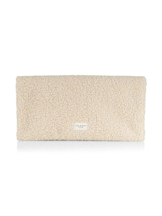 Luscious teddy tote featuring a spacious interior and logo patch at front.