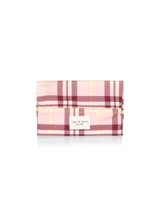 rag & bone’s Addison pouch pocket is adorned with a multicolored plaid print and an adjustable strap.