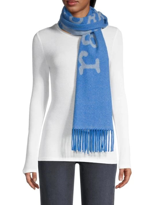Showcasing the oversized logo text, this ultra-soft scarf is crafted of recycled wool finished with twisted fringe trim.