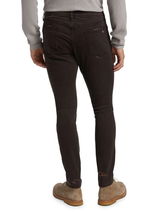 These distressed jeans feature classic details like belt loops, a zip fly with button closure, and a five-pocket style.