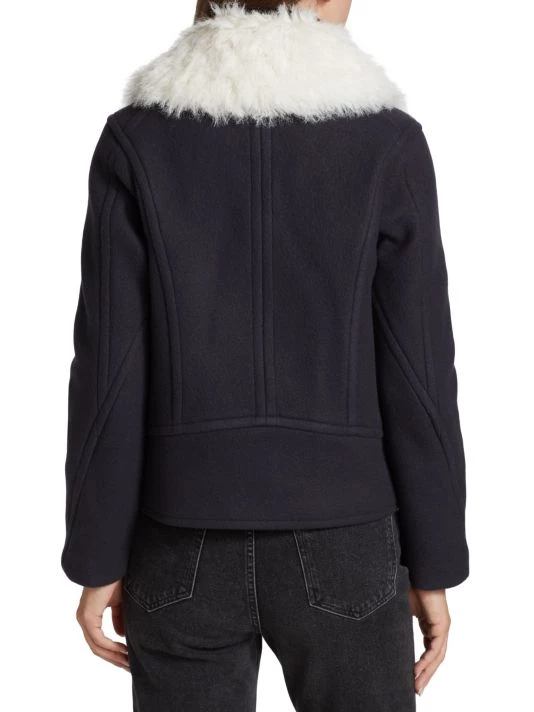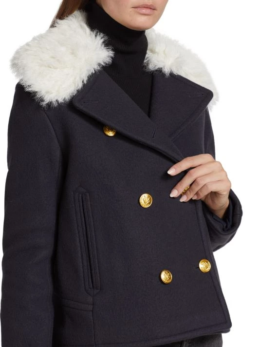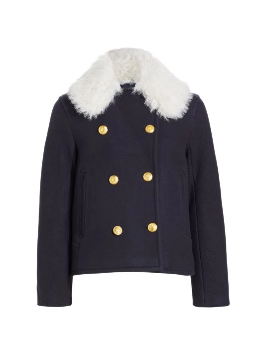 This playful rag & bone Alfie peacoat features a classic double-breasted style with signature fisheye buttons. Showcasing a detachable faux shearling collar, this coat evokes an elegant design.