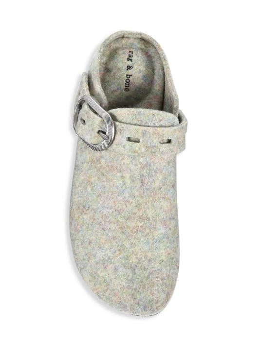 Felt adds texture to these slides, topped with embossed buckle strap.