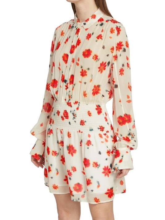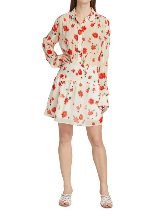 Decorated in a vibrant floral print, rag & bone’s Bailey dress is cinched with a smocked waistband. This piece is finished with long billowy sleeves.