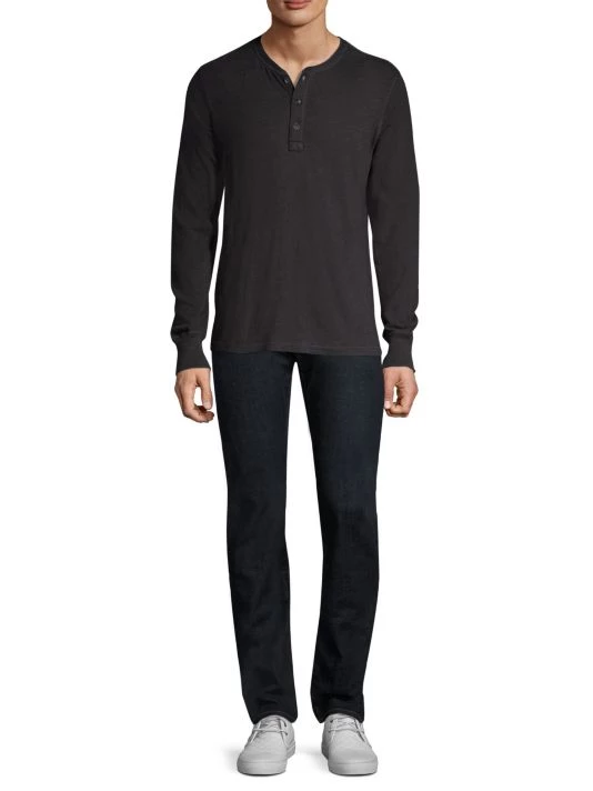 Versatile long sleeve henley pullover in soft cotton-blend.
