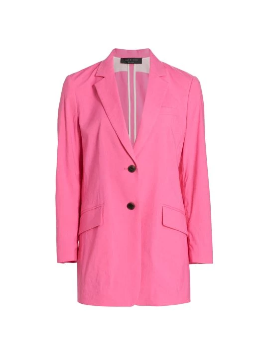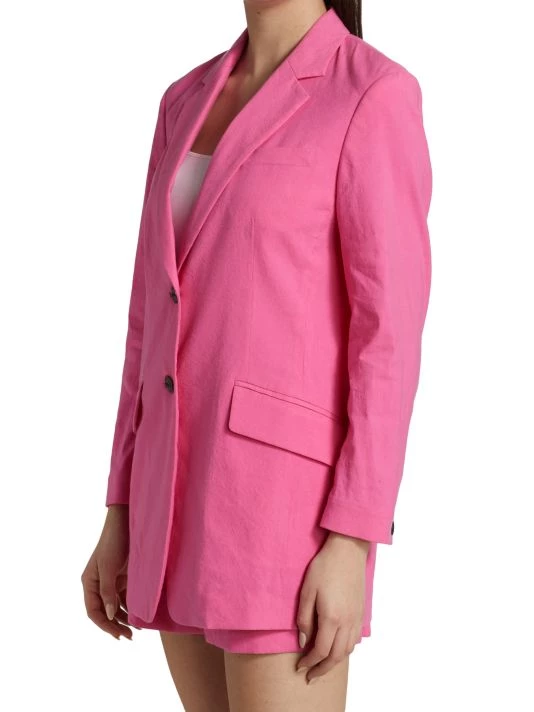 Crafted of a linen blend, this single-breasted blazer is enhanced by contrast button closures.