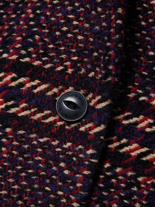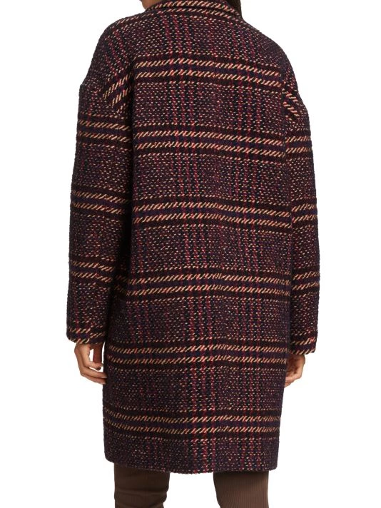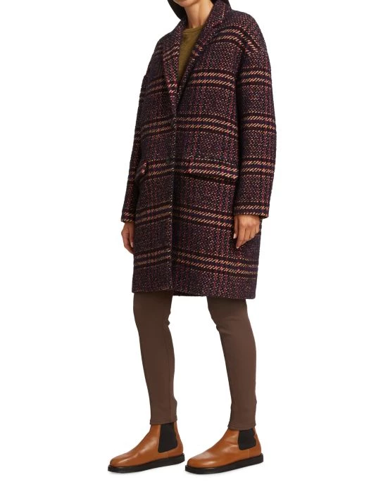 With a cocoon silhouette, this tailored coat presents a striking plaid pattern and signature horn buttons.