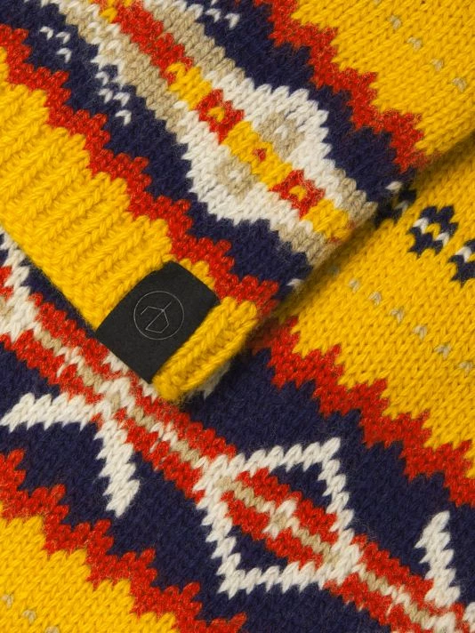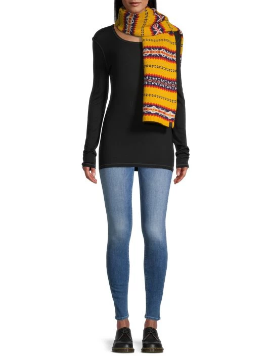 This classic heritage scarf in a novelty Fair Isle stitch features a branded logo patch at the ribbed trim.