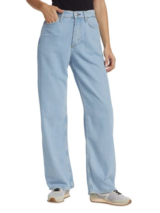 Rag & bone’s Featherweight Logan jeans feature a high-rise fit, finished in a wide leg. Relaxed through the hip and thigh, this look showcases a faded wash.