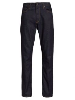 Japanese-sourced denim comprises these straight-leg stretch jeans, designed with a dark indigo wash.