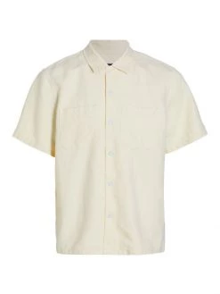This short-sleeve linen-blend shirt features two patch pockets on the chest.