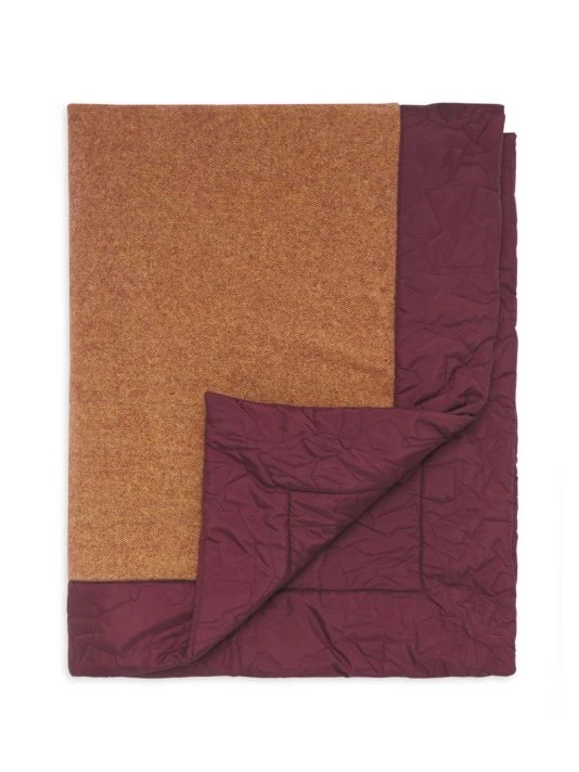 Ultra-warn puffer blanket flaunting a quilted construction featuring a wool panel adorned with Rag & Bone’s oversized logo.