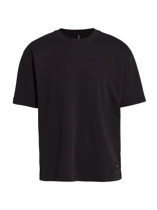 Made of cotton, this boxy, relaxed-fit shirt features a crewneck and short sleeves.