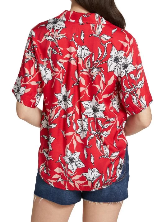 This classic shirt features a bright floral print, crafted of a soft silk-blend.