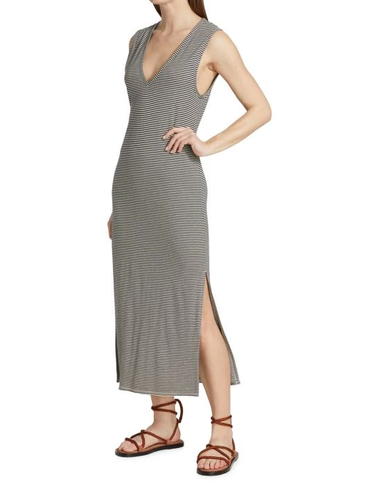 The sleeveless Michal midi-dress by New York’s rag & bone features a horizontal striped pattern and high slits at the side.