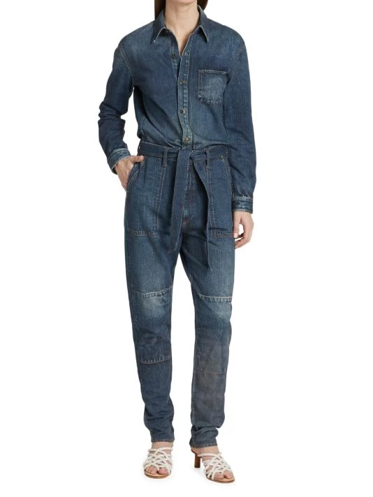 Rag & bone’s Miramar jumpsuit is crafted of durable denim, highlighting the waist with a self-tie belt.