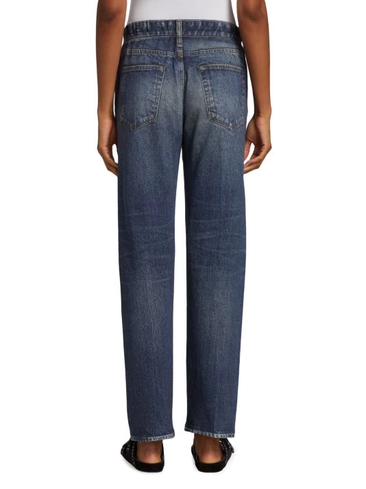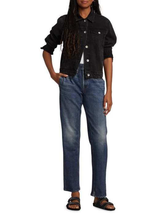 These straight-leg jeans have a comfortable elasticized waist, adorned with a faded effect at the thighs.