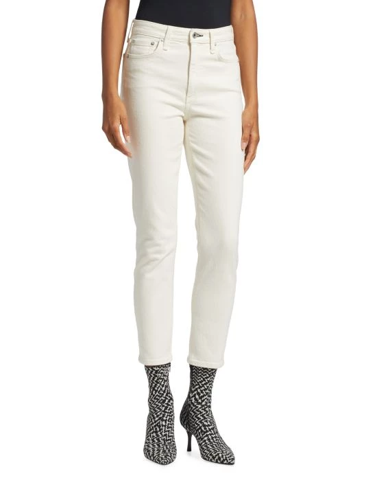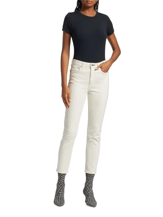 These high-rise skinny jeans have textured whiskering at the thighs, cut in a cropped length.
