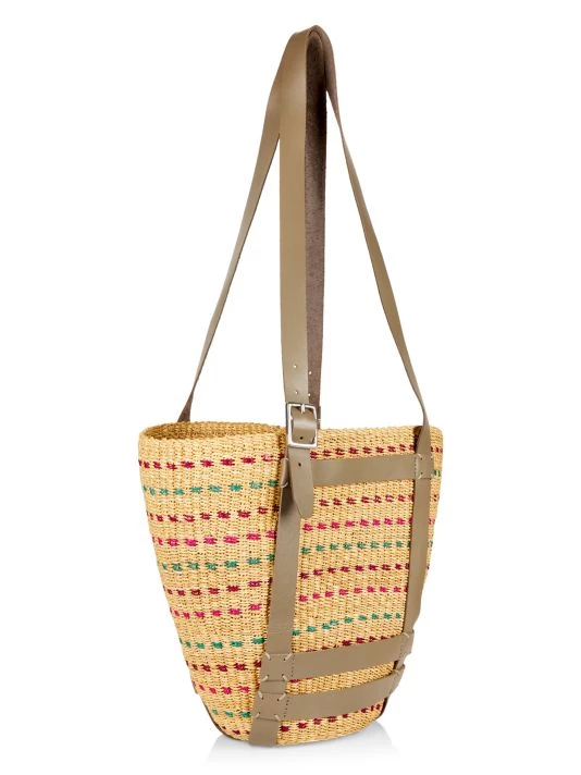 From the rag & bone x AAKS Collaboration. Crafted of multicolored straw, this tote is designed with caged leather straps. This basket silhouette is finished with a logo-debossed patch at the front.