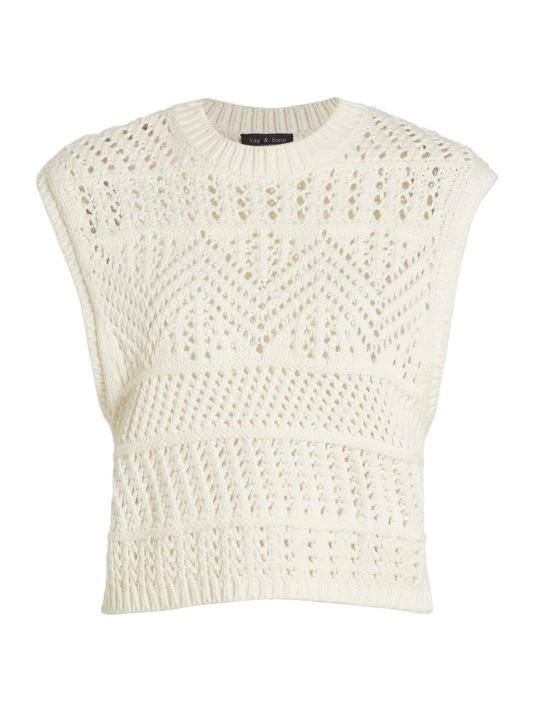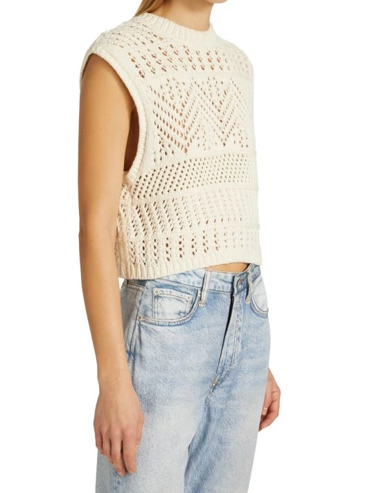 Crocheted with mixed stitch patterns, this stretch cotton shell has a shrunken fit.