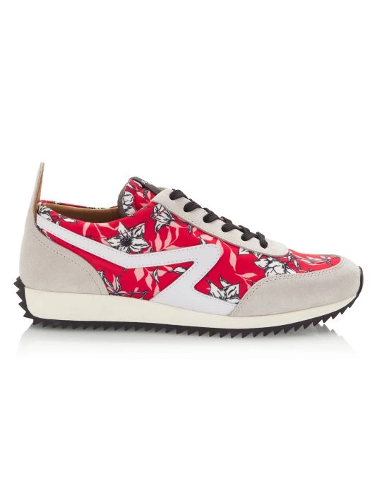 rag & bone’s Retro sneakers are a low-top style with a custom floral print. These shoes feature leather and suede details with a rippled tonal rubber outsole.