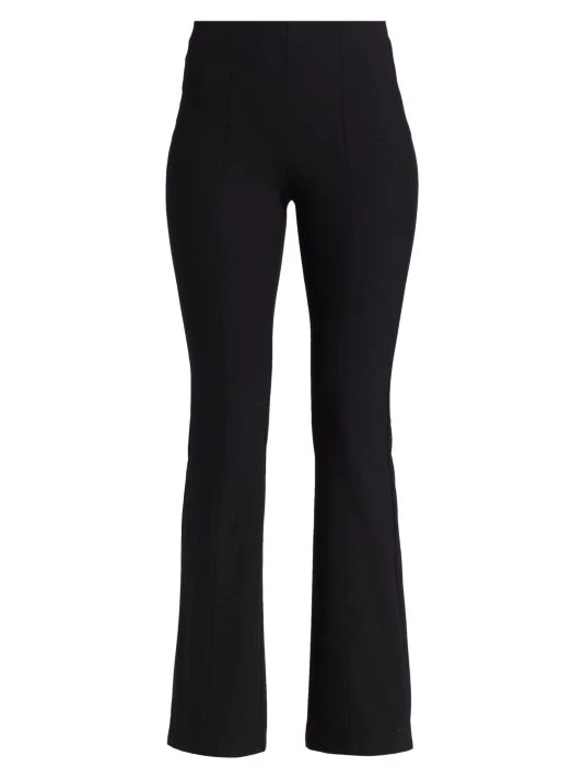 These fitted pants hug the waist in a mid-rise to the hips, flaring out at the hem.