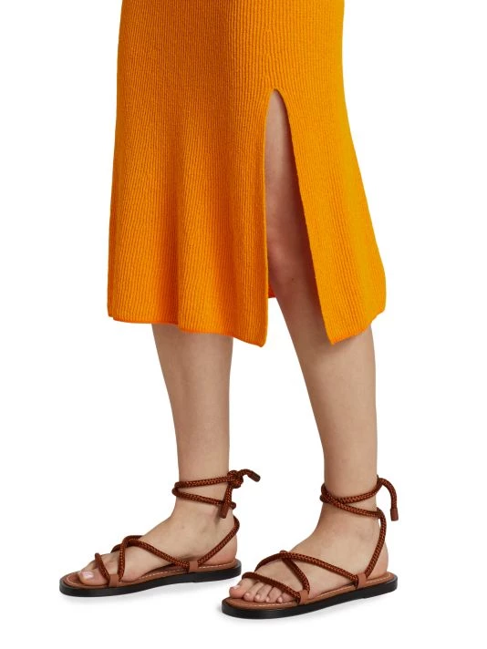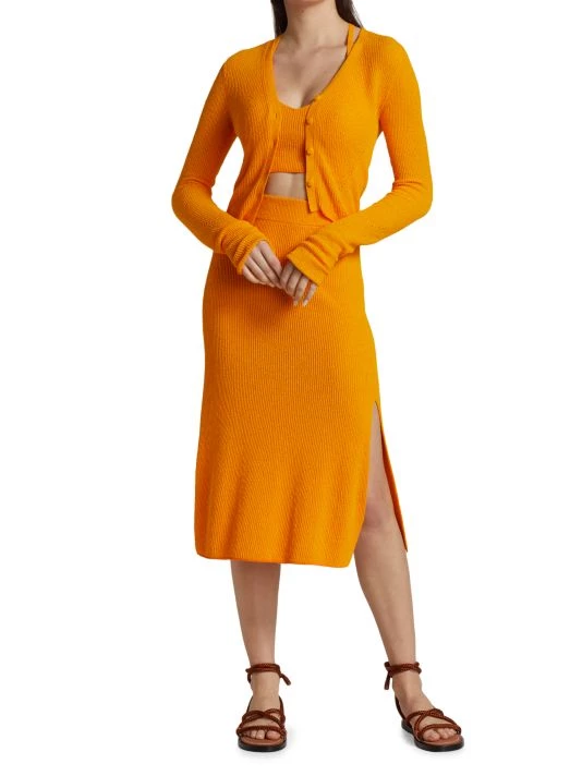 Cut in an A-line silhouette, this rib-knit midi-skirt is defined by a sleek side slit.