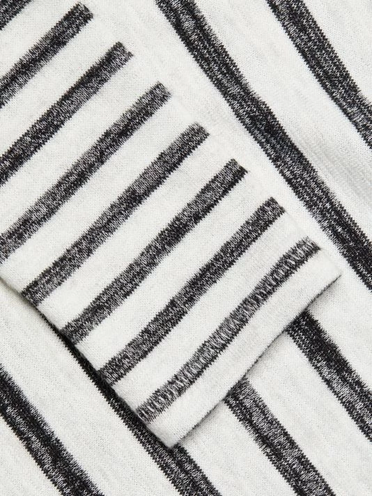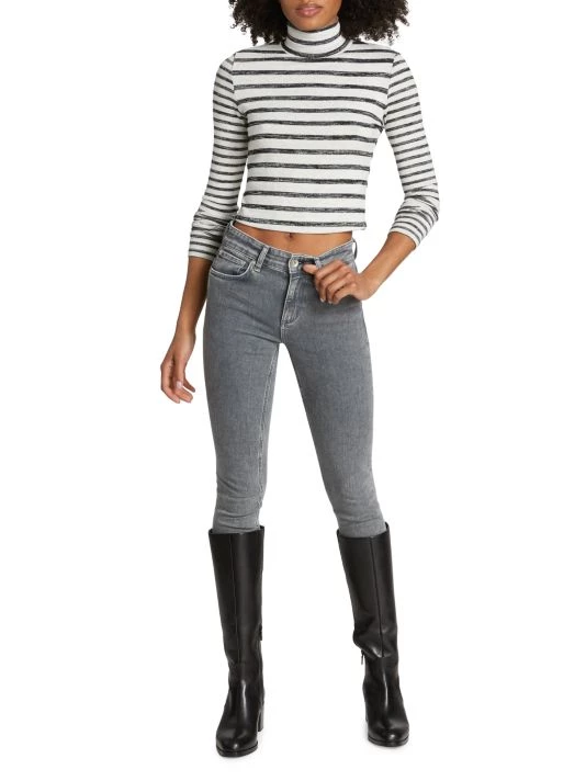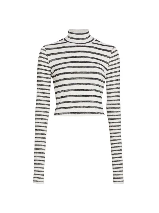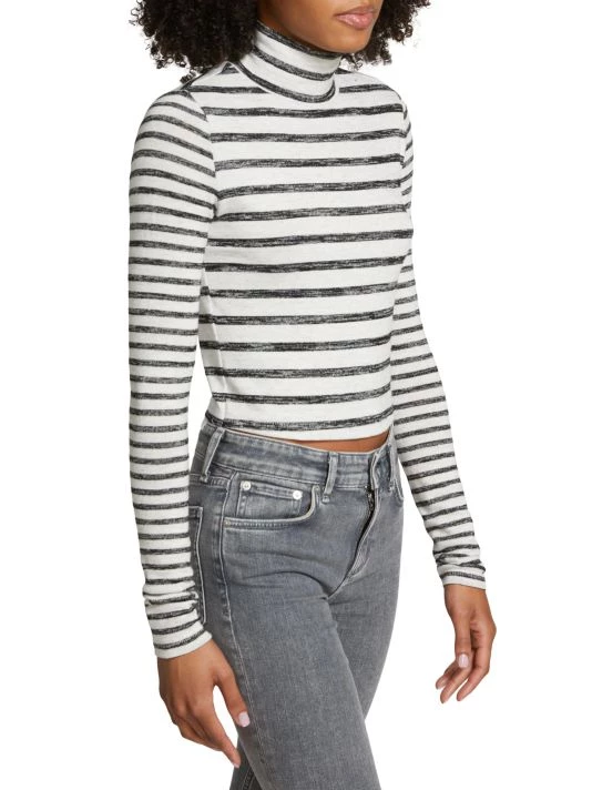Designed with bold stripes, rag & bone’s cropped sweater features a classic turtleneck with signature railroad stitch detailing.